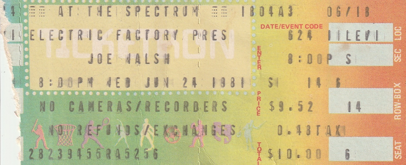 Joe Walsh ticket for June 24, 1981 at the Spectrum.