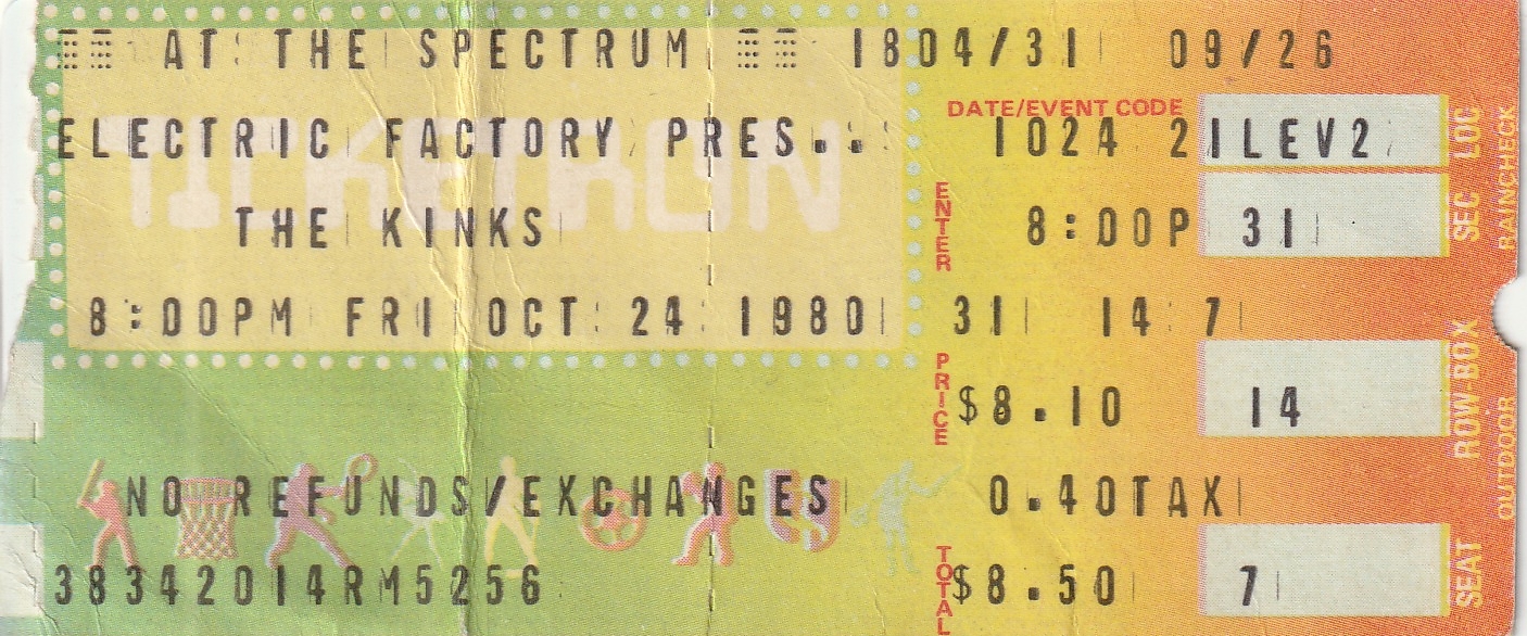Kinks ticket for Friday, October 24, 1980 at the Spectrum.